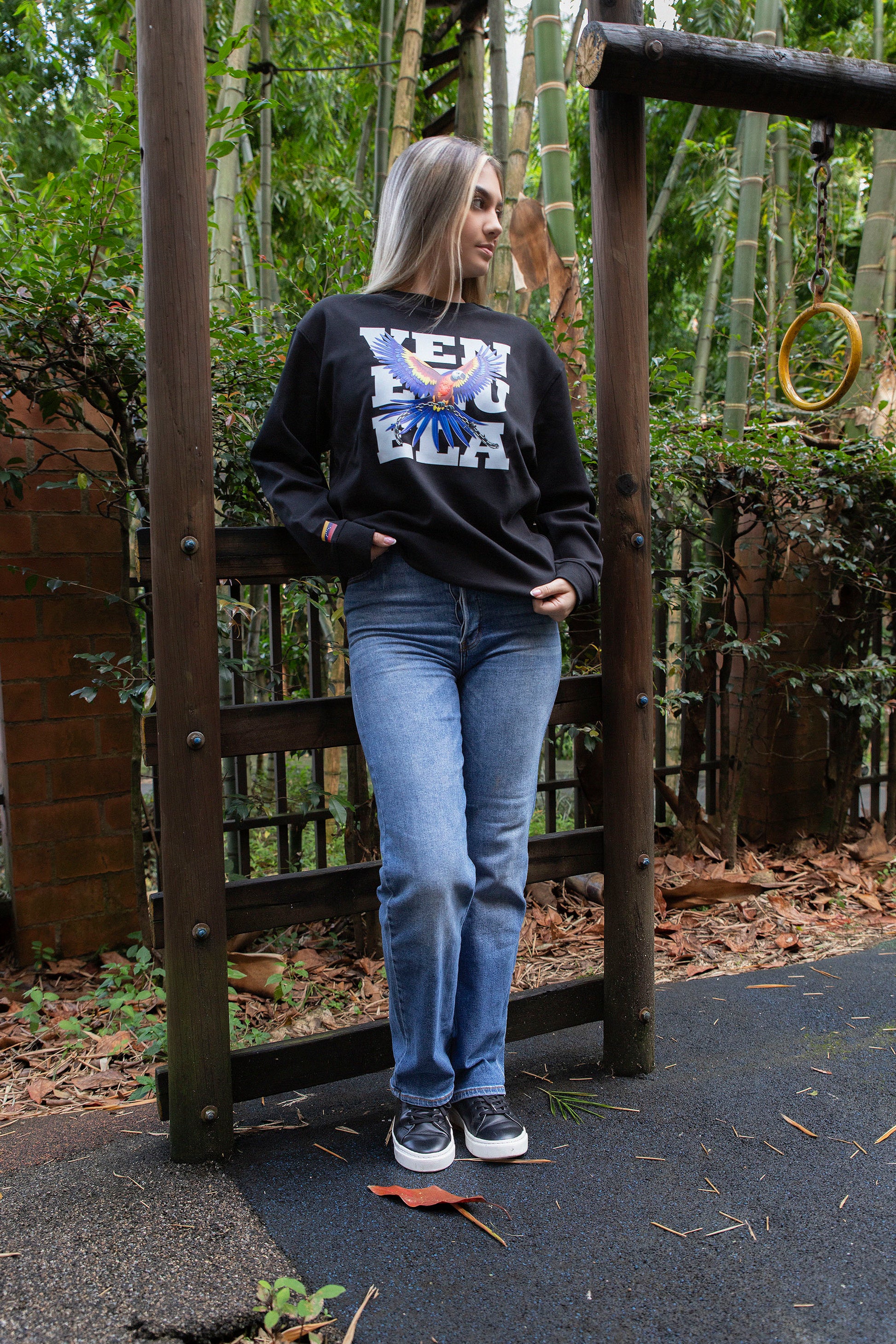BUZO CON GUACAMAYA (letras de fondo)